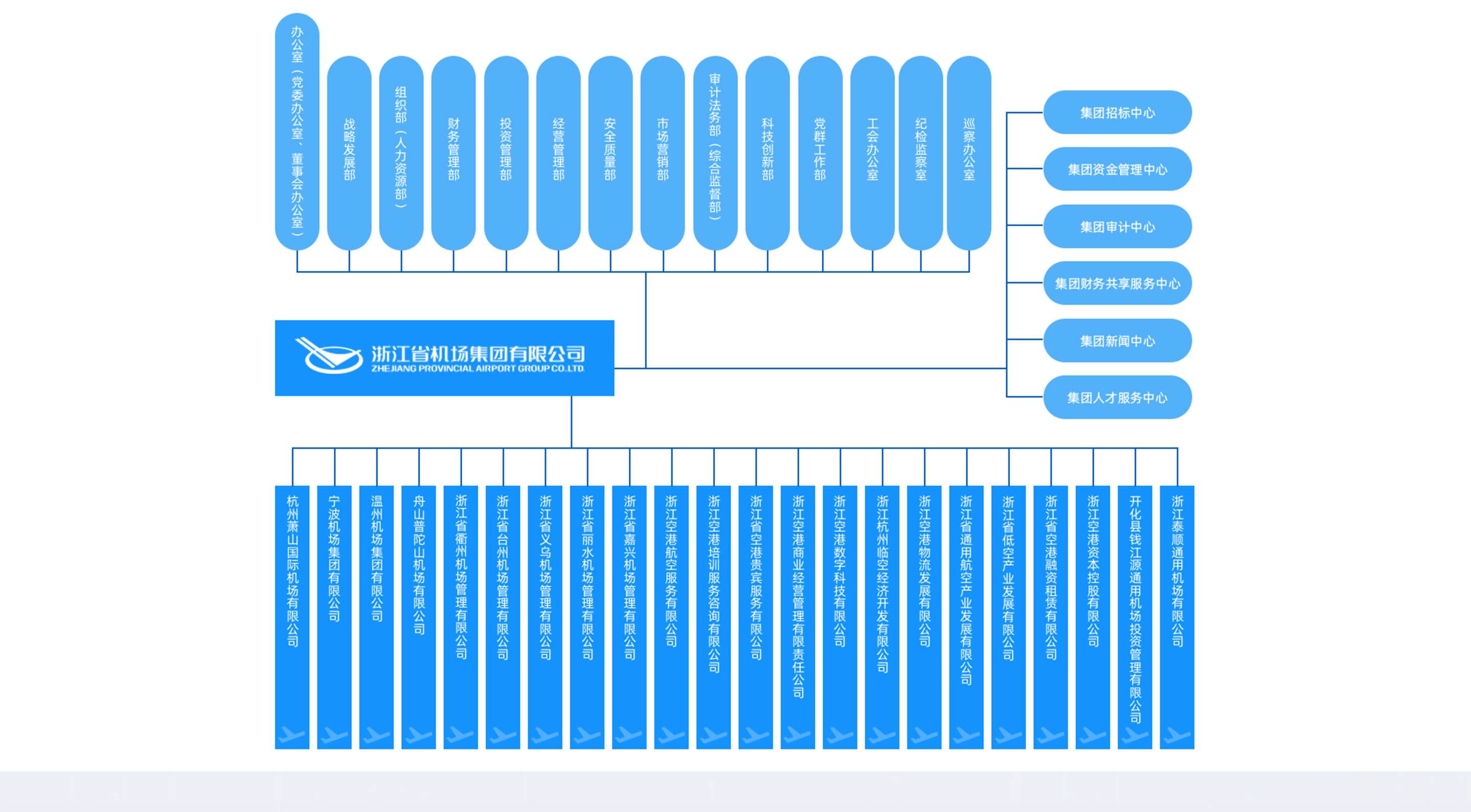浙江省機(jī)場(chǎng)集團(tuán)有限公司是省級(jí)綜合交通投資、建設(shè)、運(yùn)營(yíng)和管理平臺(tái),根據(jù)省委、省政府關(guān)于整合全省機(jī)場(chǎng)資源、搭建航空大平臺(tái)的決策部署,2017年11月17日揭牌成立,時(shí)任浙江省委書記車俊、省長(zhǎng)袁家軍共同揭牌。集團(tuán)注冊(cè)資本金100億元,下轄杭州機(jī)場(chǎng)、寧波機(jī)場(chǎng)、溫州機(jī)場(chǎng)、舟山機(jī)場(chǎng),托管衢州機(jī)場(chǎng)、臺(tái)州機(jī)場(chǎng)、義烏機(jī)場(chǎng)、建德千島湖通用機(jī)場(chǎng)等。